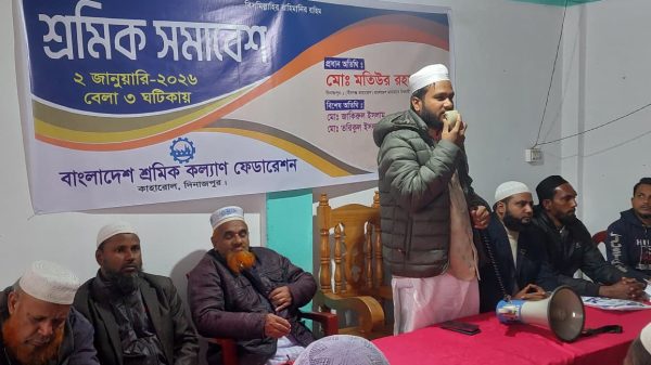কাহারোলে শ্রমিকদের অধিকার আদায়ে শ্রমিক সমাবেশ, নেতৃত্বের আহ্বান মতিউর রহমানের