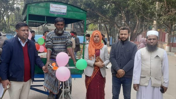 সাঁথিয়ায় সমাজসেবা অধিদপ্তরের ভ্যানগাড়ি পেয়ে খুশি ময়েন উদ্দিন।