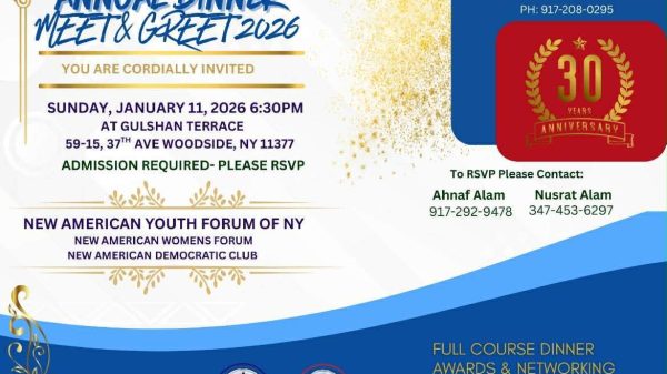 মূলধারার নিঊ আমেরিকান ডেমোক্রেডিক ক্লাবের তিন দশক পালন করবে ১১ জানুয়ারি ,রবিবার